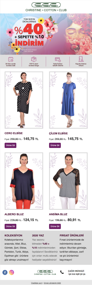 İndirim, yeni ürün ve sınırlı süreli fırsatların duyurulduğu e-postalardır. En yaygın ve dönüşüm sağlayan türdür.